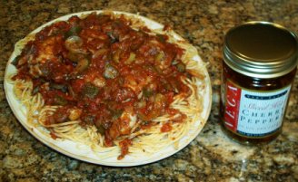 hot cherry peppers into a clear part of the skillet, (one full jar