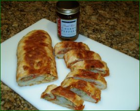 Cherry Peppers and mozzarella. Roll up, lengthwise, jelly roll fashion.