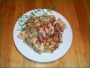 Place grilled cutlets on deep platter, pour the Vega Duet (eggplant